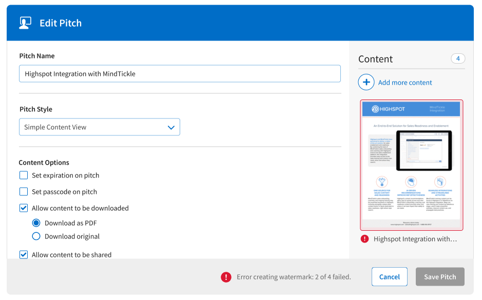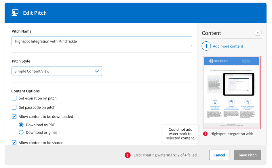 Adding a “Watermark” Label to Confidential Content - Highspot, Product Designer